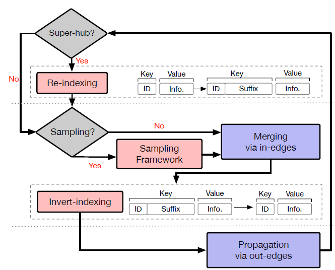 图构建:图构建的性能在图计算平台中起着核心作用。AliGraph 支持来自不同文件系统的各种原始数据。下图给出了两个数据集上图构建的时间成本和 worker 数量的关系。
