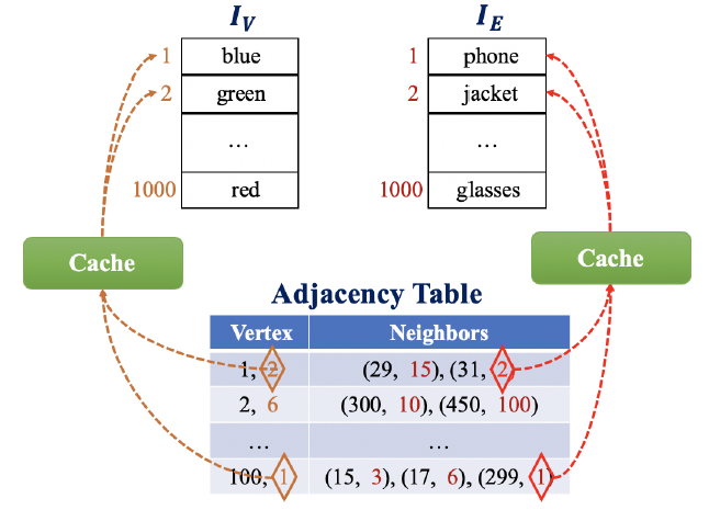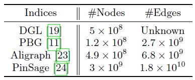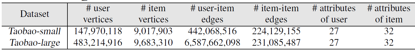 这里我们将从storage(图构建和邻居缓存)、sampling、operator 等角度评估 AliGraph 平台中底层系统的性能。所有实验都在下表中描述的Taobao-small 和Taobao-large上进行,后者的存储规模是前者的六倍。它们都是从淘宝电商平台获取的、代表用户和 item 的子图。