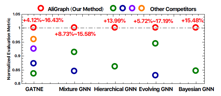 这仅仅是因为我们通过缓存策略来消除中间 embedding 向量的冗余计算。这再次证明了我们 AliGraph 平台的优越性。