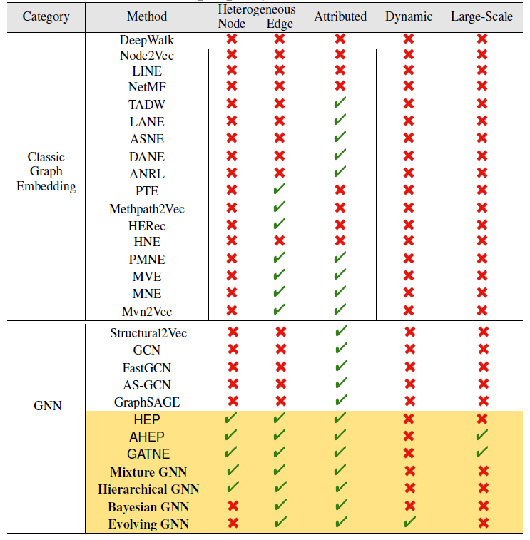 GNN-based 方法:Structure2Vec, GCN, Fast-GCN, AS-GCN, GraphSAGE, HEP 。
