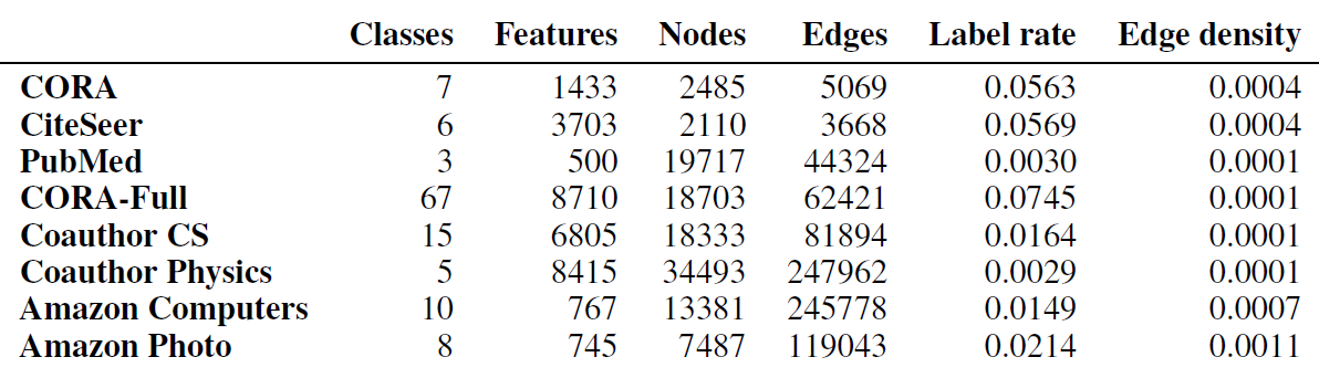 下表给出了数据集的统计信息。这些数据集都是属性异质图。