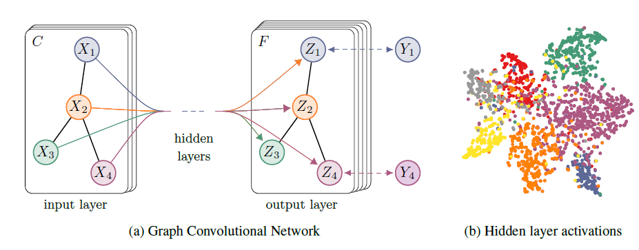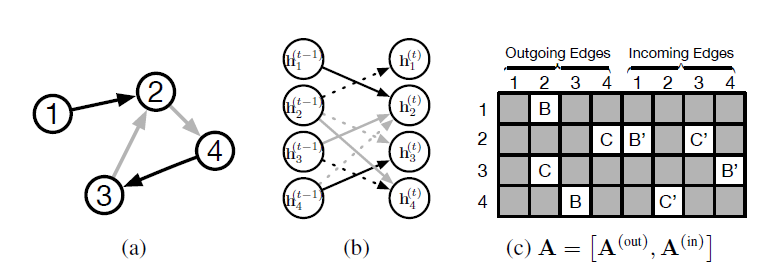 我们所提出方法的直观想法是:图中的节点代表对象或概念,而边代表它们之间的关系。每个概念自然地由它的特征和相关的概念来定义。因此,我们可以可以将一个状态向量state vector representation,并可用于产生输出
