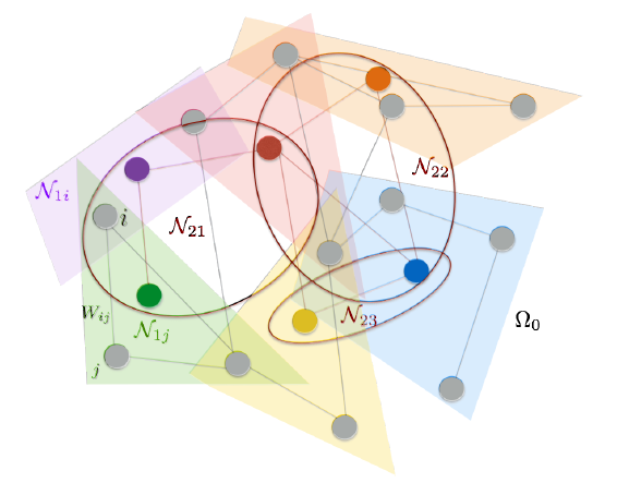 的状态向量 依赖于其邻居的状态向量集合 。而邻居的状态向量又依赖于邻居的邻居的状态向量集合。 注意:这里的邻域依赖性使得计算状态向量所依赖的节点规模迅速膨胀。假设平均邻域大小为
