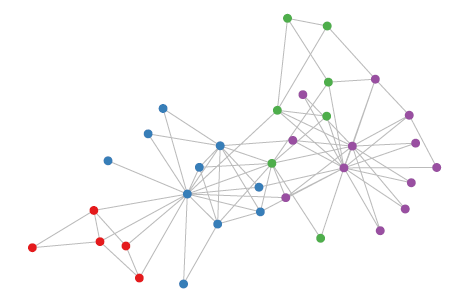 在下图中,图片由区域邻接图region adjacency graph 来表达,其中节点表示均匀图片强度的区域,边代表这些区域的邻接关系。在这种情况下,可以根据图片的内容通过