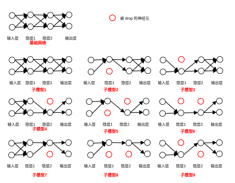 这种随机性并不是产生正则化效果的必要条件,它仅是近似所有可能的子模型总和的一种方法。
