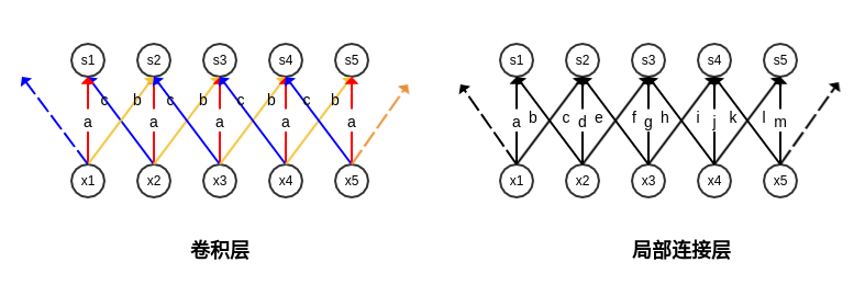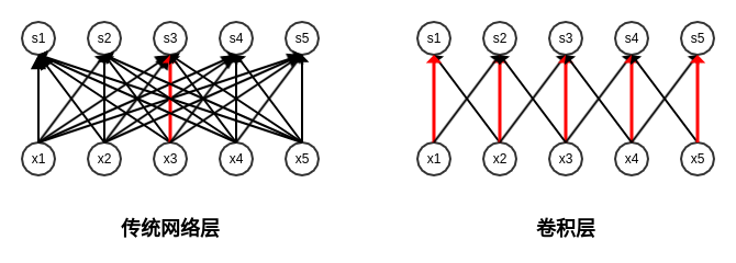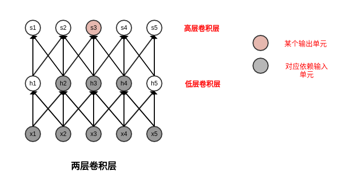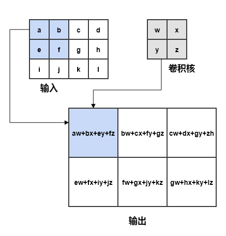 一个输入是通过对前一个输出 采用核 进行卷积。