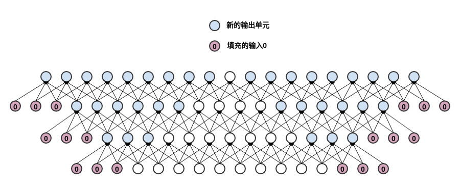 如果未填充零,则网络每一层的宽度会逐层递减。根据卷积的性质,网络每一层宽度减少的数量等于卷积核的宽度减1。