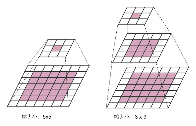 如果输入图像的宽度是 ,则网络经过了 层之后,输出的宽度变成 。如果核的宽度 非常大时,缩减非常明显。最终网络会缩减到 1 。