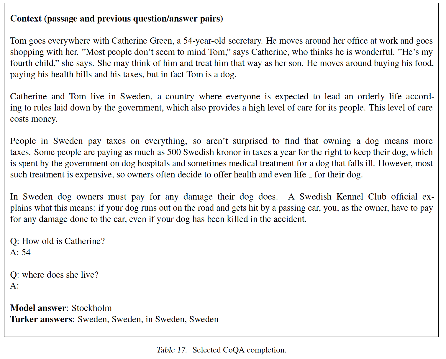ConvAI2 hidden test 集合上评估了 OPT-175B ,并达到了 10.7 ppl 和 .185 UF1,与验证集的性能相匹配。ConvAI2-like 的 MultiSessionChat: MSC 数据集(《Beyond goldfish memory: Long-term open-domain conversation》)的子集上评估了 OPT-175B,并获得了 9.7 ppl 和 .177 UF1 ,表明 OPT-175B 模型在多个 PersonaChat-like 数据集中很好地泛化。由于 MSC 数据集和 WoI 数据集都是在 CommonCrawl snapshot (由预训练语料库所使用)之后发布的,因此数据泄露的风险很小。我们得出结论:OPT-175B 具有很强的能力在不同的对话中保持一致的角色 consistent persona ,在 LaMDA 中也强调了这一行为。
