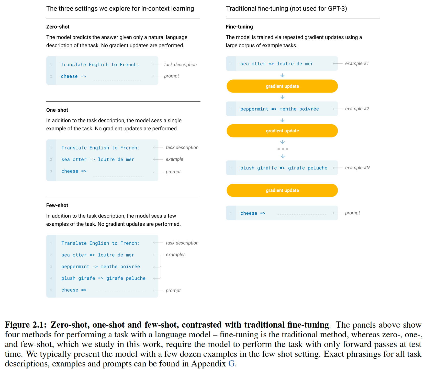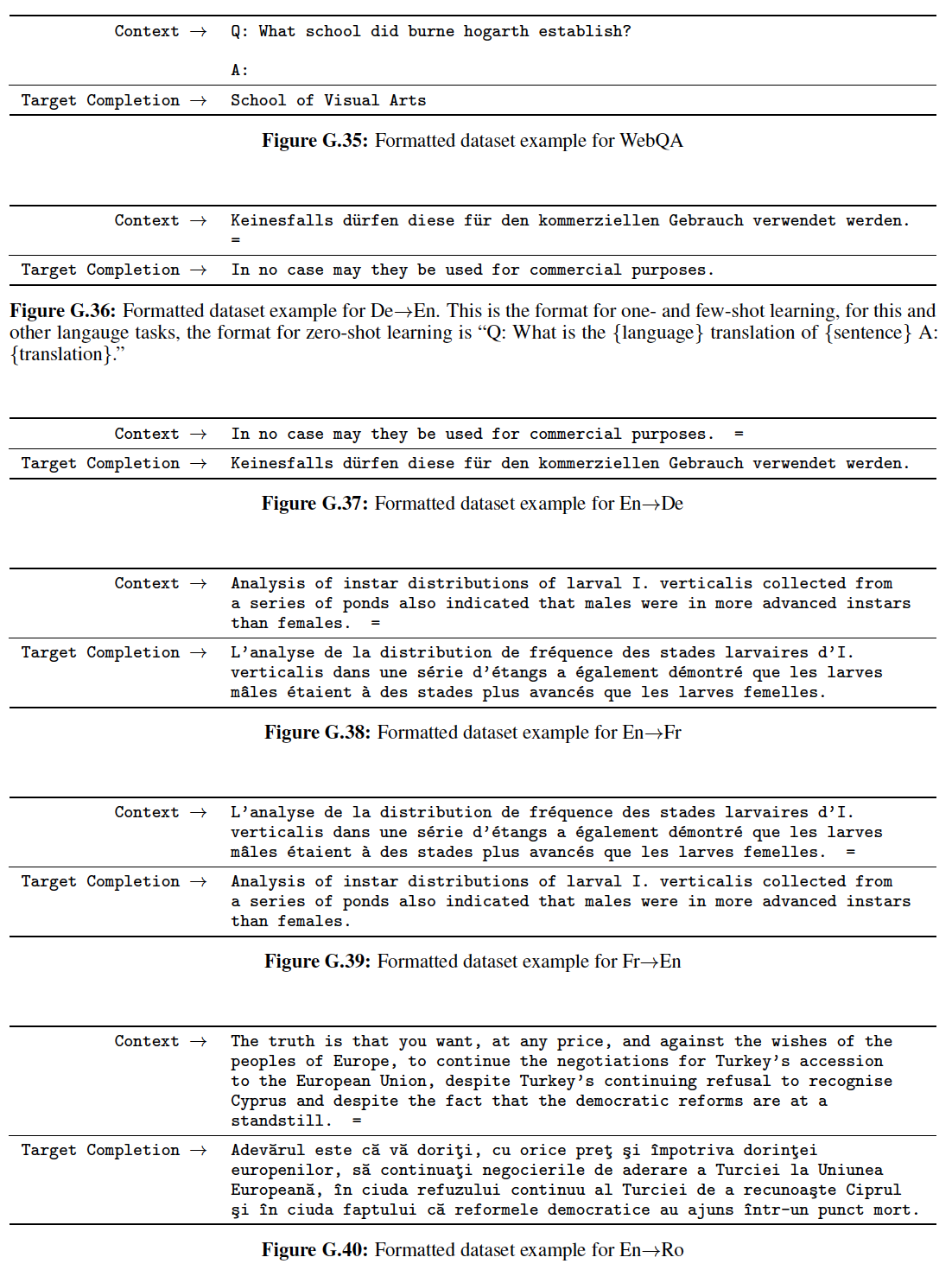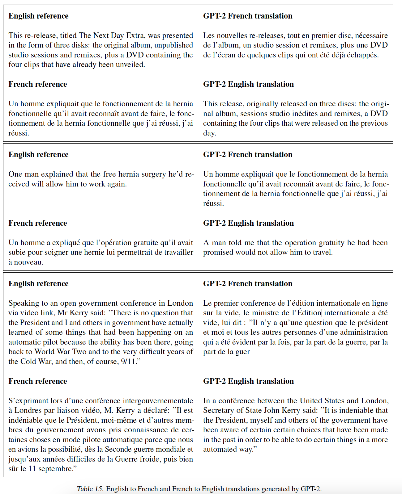 few-shot 翻译:模型并未刻意地进行多语言的训练,但是我们发现它在德语、西班牙语、法语、中文的简单翻译上取得了有限的成功。