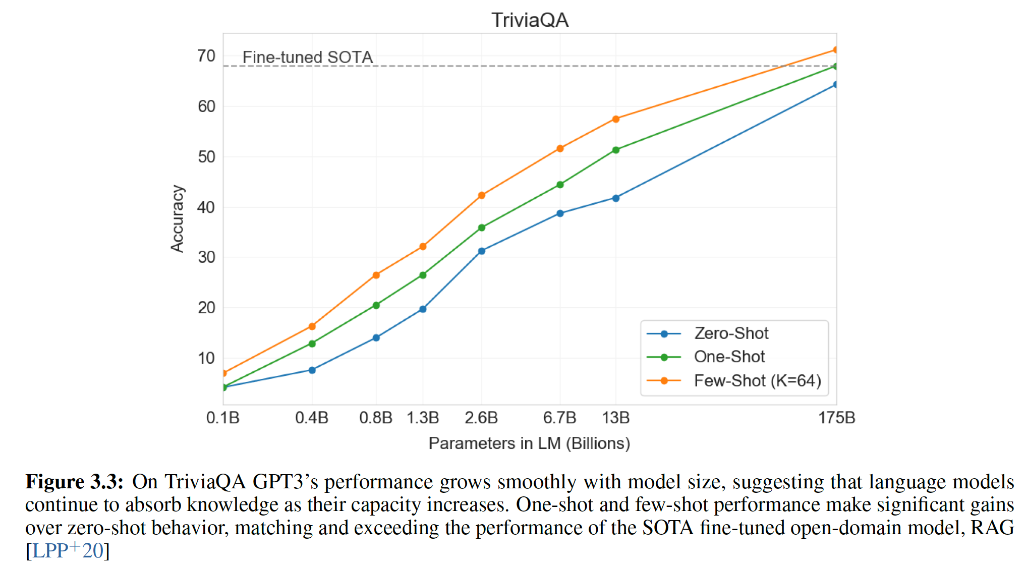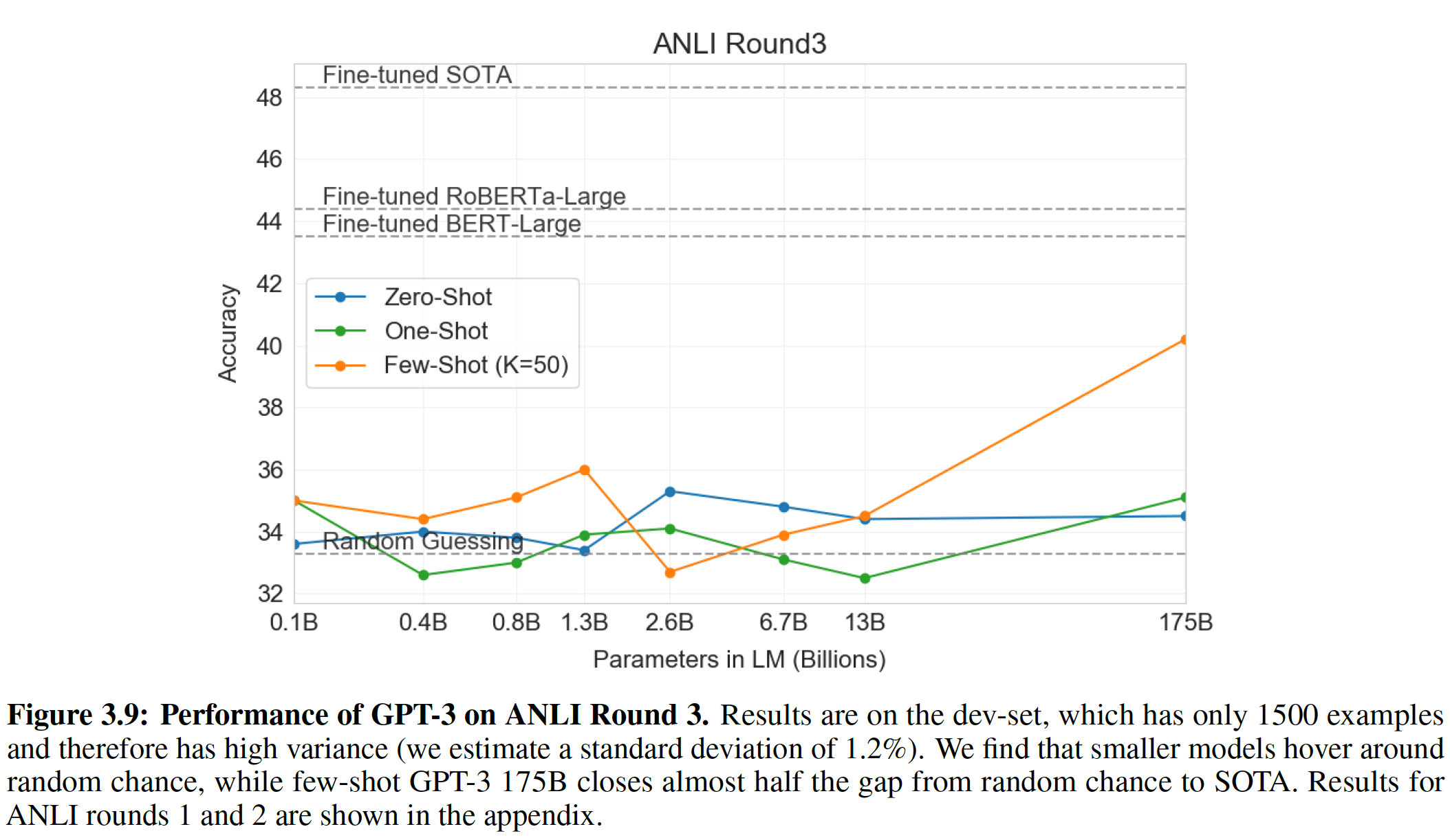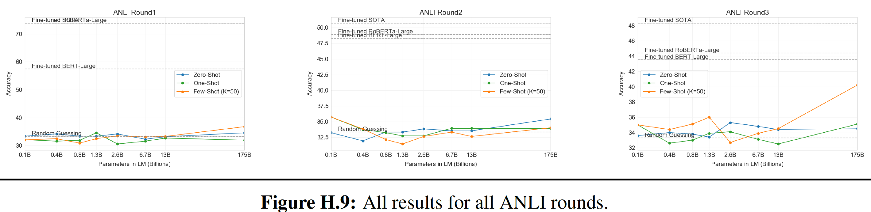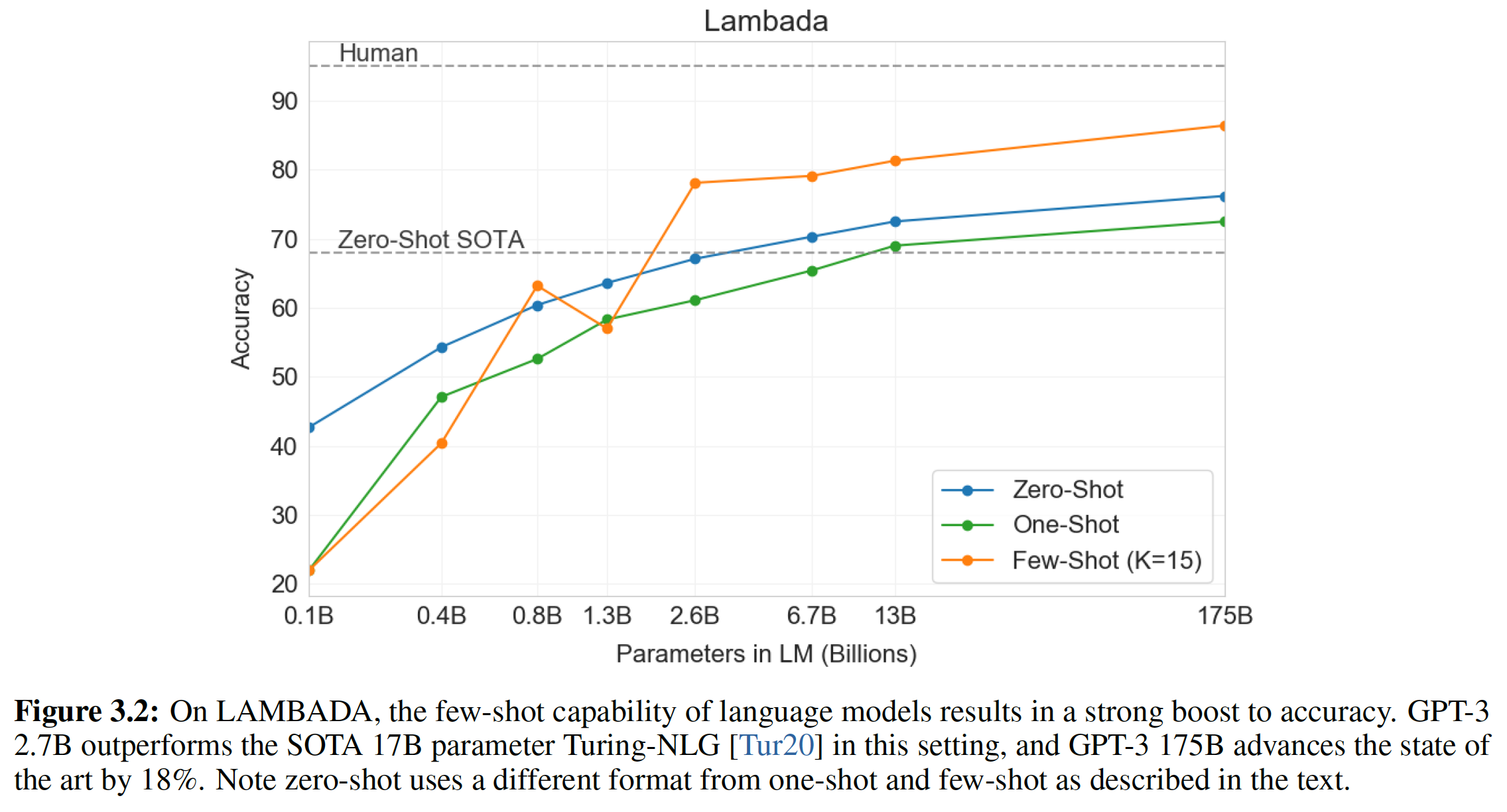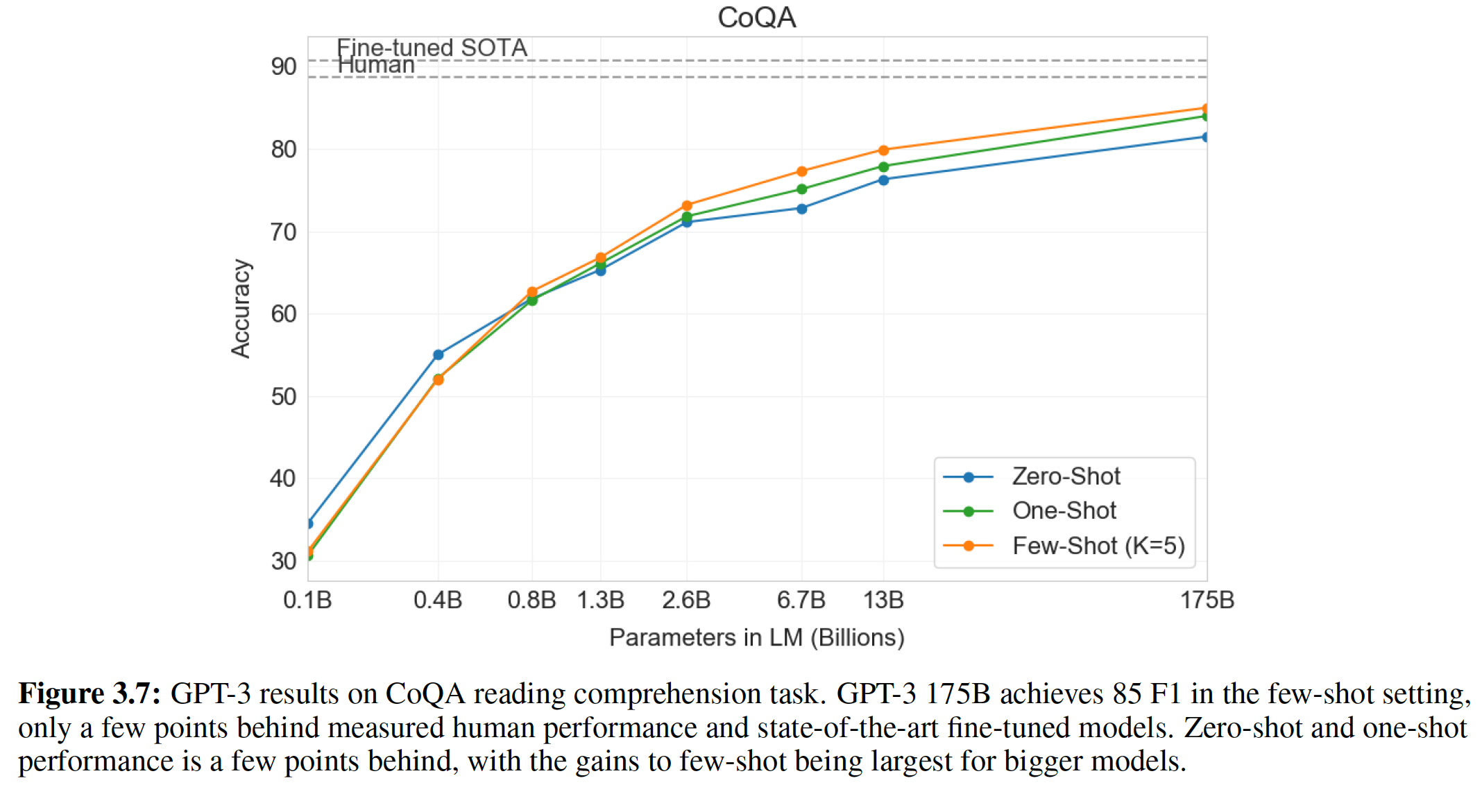 Zero-shot:所有 14 个任务的总体平均 zero-shot 性能如下图所示(忽略了 MultiRC 和 WIC )。总体而言,我们看到我们的平均性能遵循 GPT-3 的趋势。
