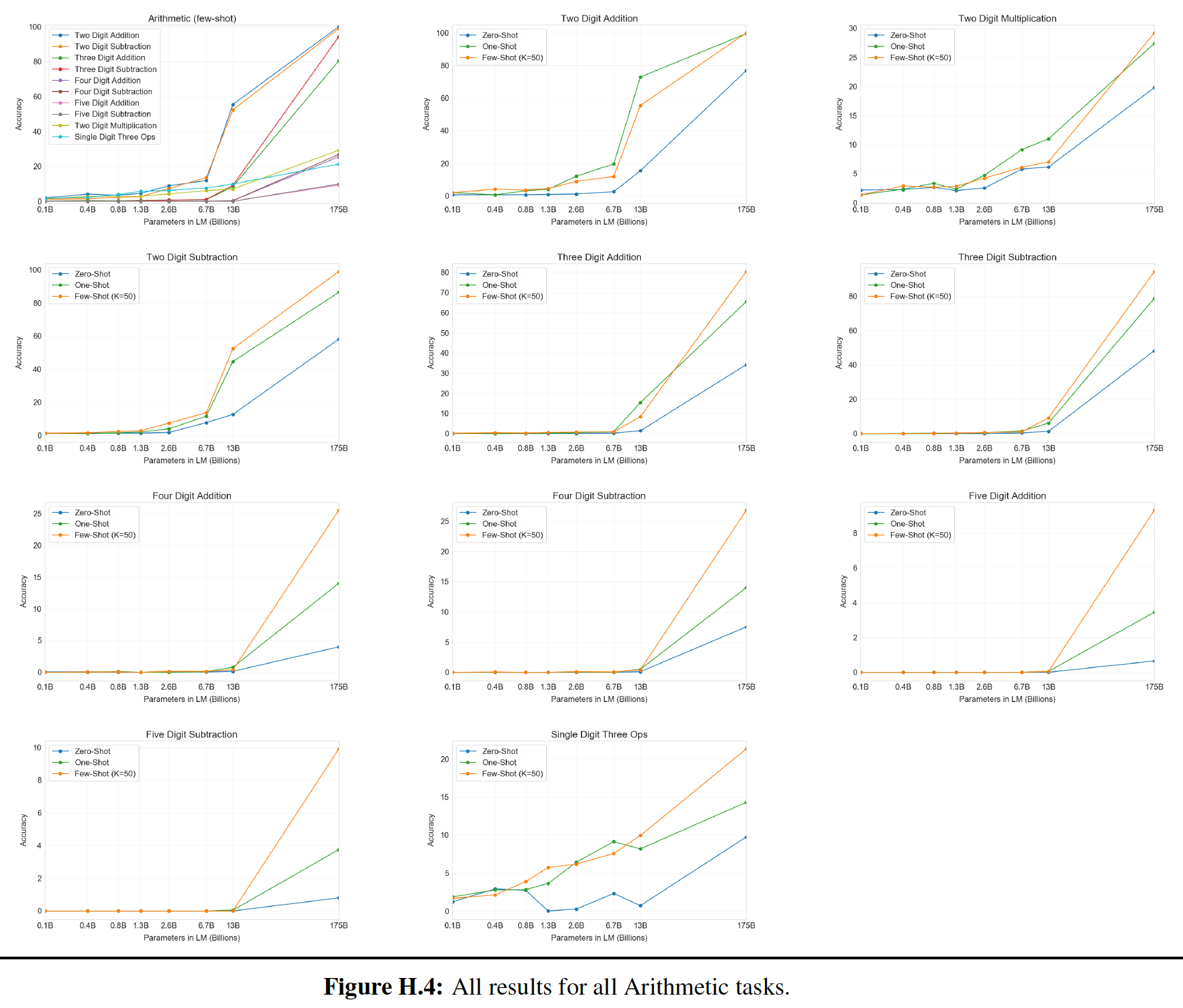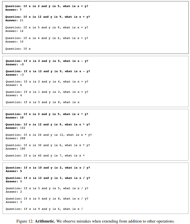 四则运算:我们观察到从加法扩展到其它运算时的错误。