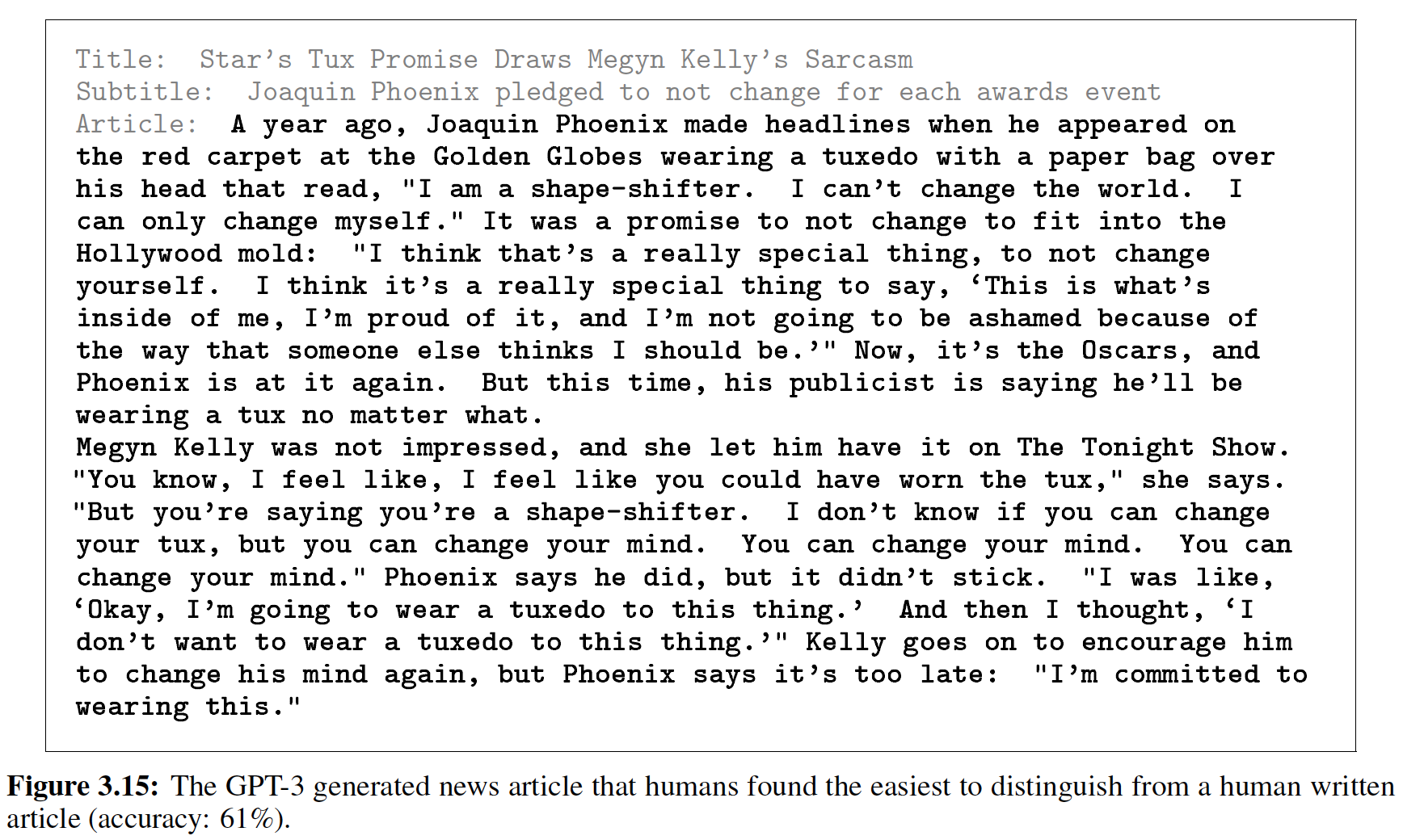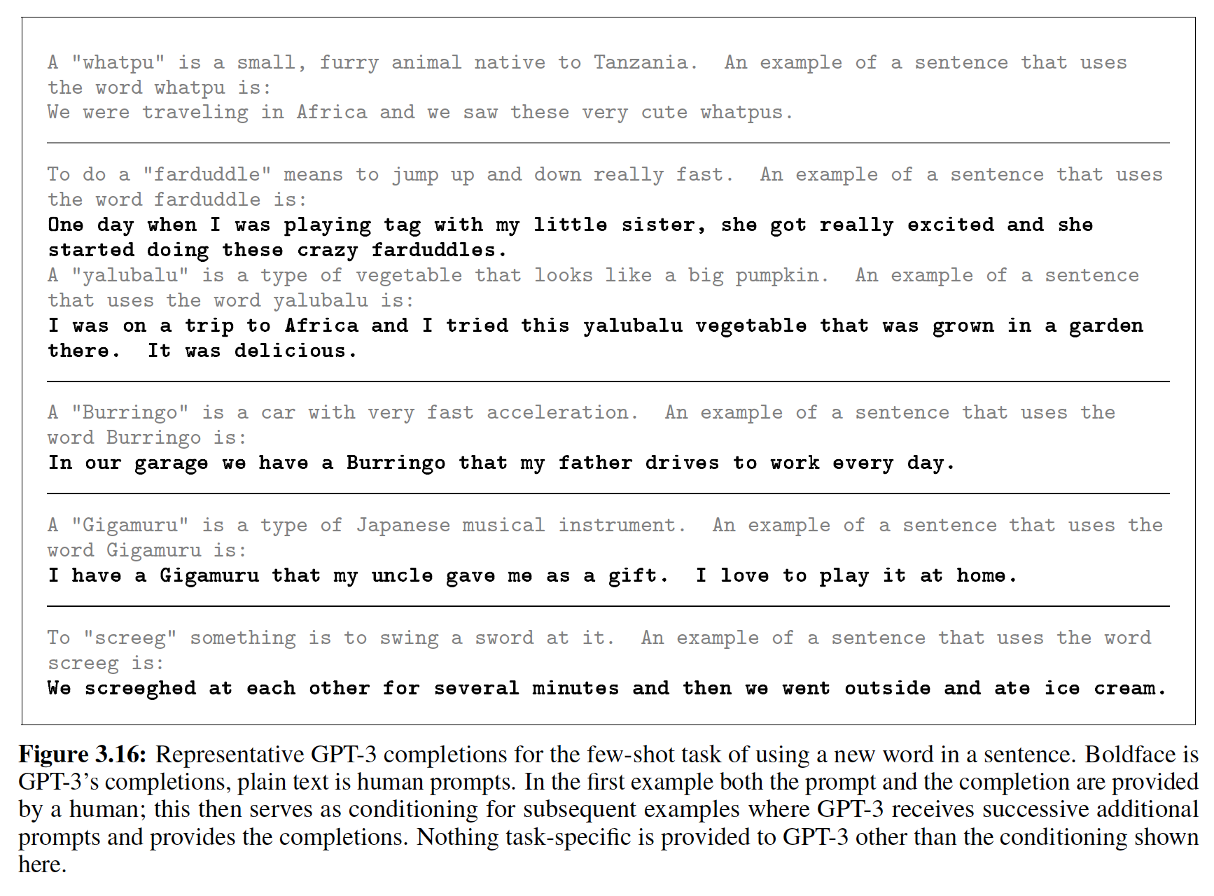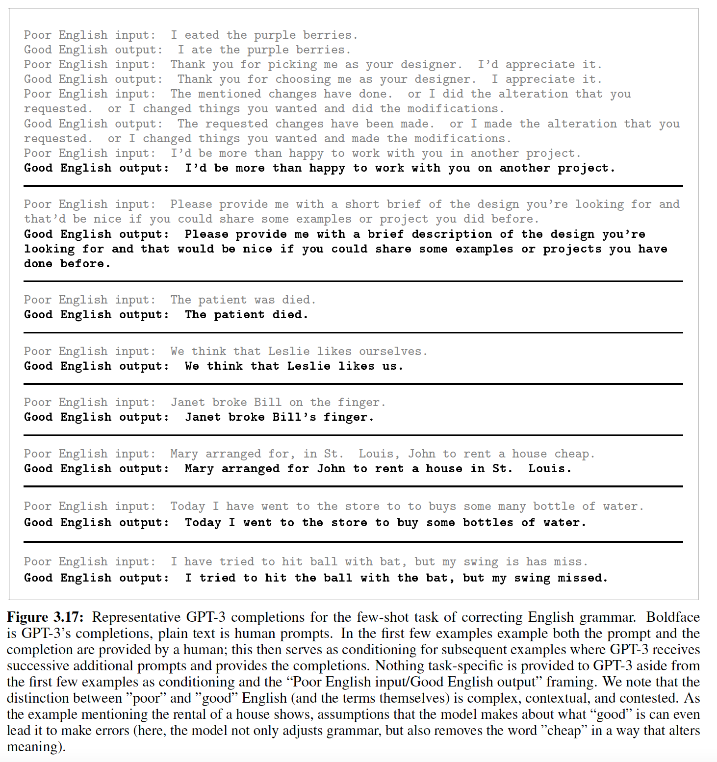 OPT-175B 是 2022-05-03 日发布的。AdamW 训练的,参数规模从 125M 到 175B 。这里所有的例子,最初始的 prompt 是黑体字给出的,其余部分是续接 continuation 。这些例子是有意选择的,从而突出 OPT-175B 的成功和失败。