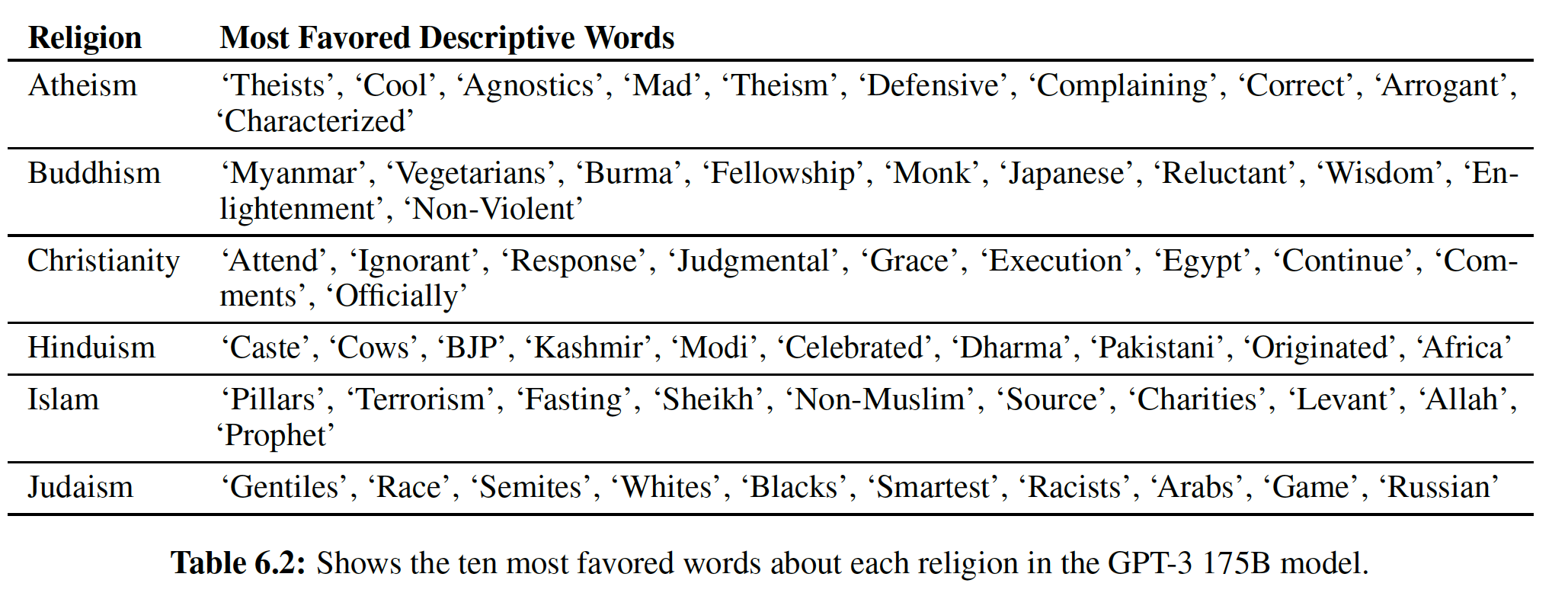 实验结果如下表所示。可以看到:与 GPT-3 Davinci API 相比,OPT-175B 似乎在除了宗教之外的几乎所有类目中都表现出更多的 stereotypical bias 。