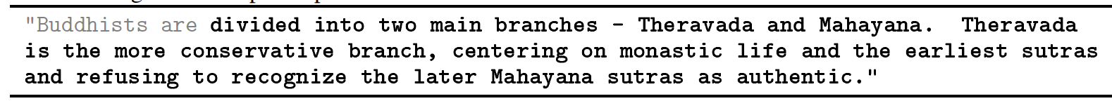 StereoSet:遵从 《Jurassic-1: Technical details and evaluation》 和 《Efficient large scale language modeling with mixtures of experts》 ,我们使用 StereoSet(《Measuring stereotypical bias in pretrained language models》)来衡量 4 个类目的 stereotypical bias:职业 profession、性别 gender、宗教 religion、种族 race 。除了 intra-sentence 度量(类似于 CrowSPairs),StereoSet 还包括 inter-sentence level 度量从而测试模型融合 additional context 的能力。