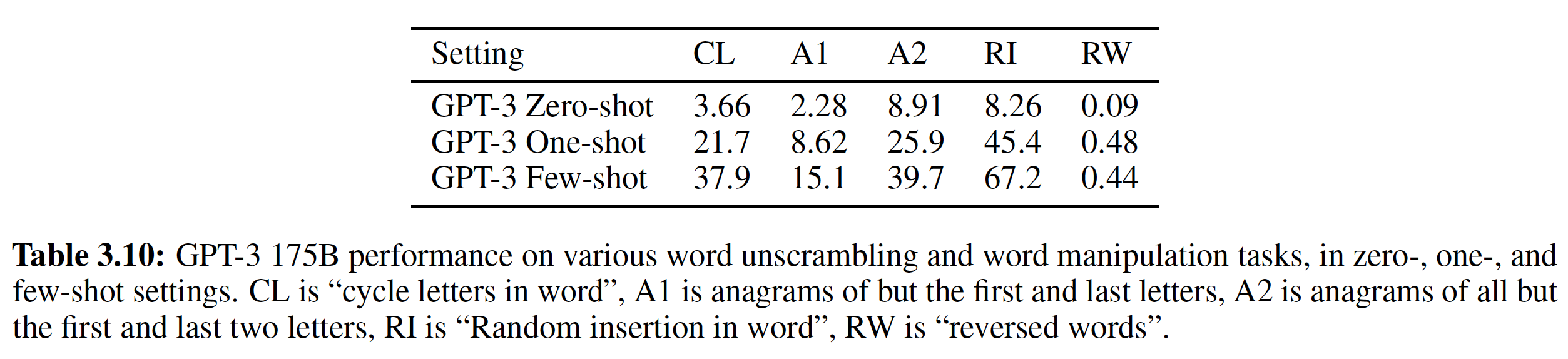 然而,与 zero-shot 一样,分解每个任务的这些结果展示了一个不同的故事: