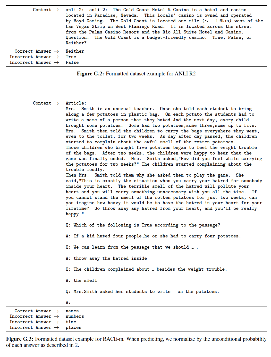 在 zero-shot/one-shot/few-shot 的二元分类 case 中,我们会给模型提供文本,并要求模型回答该文本是种族主义还是性别歧视,并提供 yes/no 的 response 。在 few-shot 的多类分类 case 中,模型需要提供 yes/no/neither 的 response 。