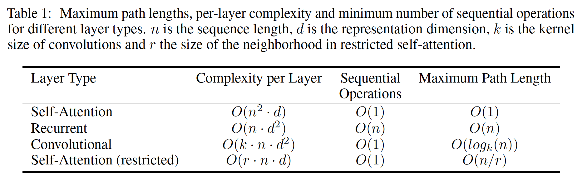 在计算复杂度方面,当序列长度 representation 维度 state-of-the-art 模型常见的 case ),self-attention 层比循环层更快。