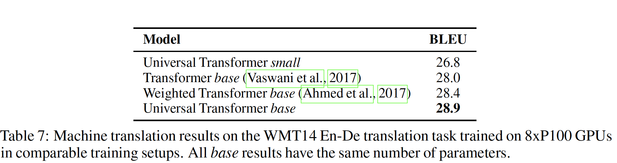 base model 使用单个模型,该模型是通过平均最后 5 个 checkpoint 获得的,其中 checkpoint 是以 10 分钟的间隔写入的。 big model 也是会用单个模型,但是它平均了最后 20 个 checkpoint 。