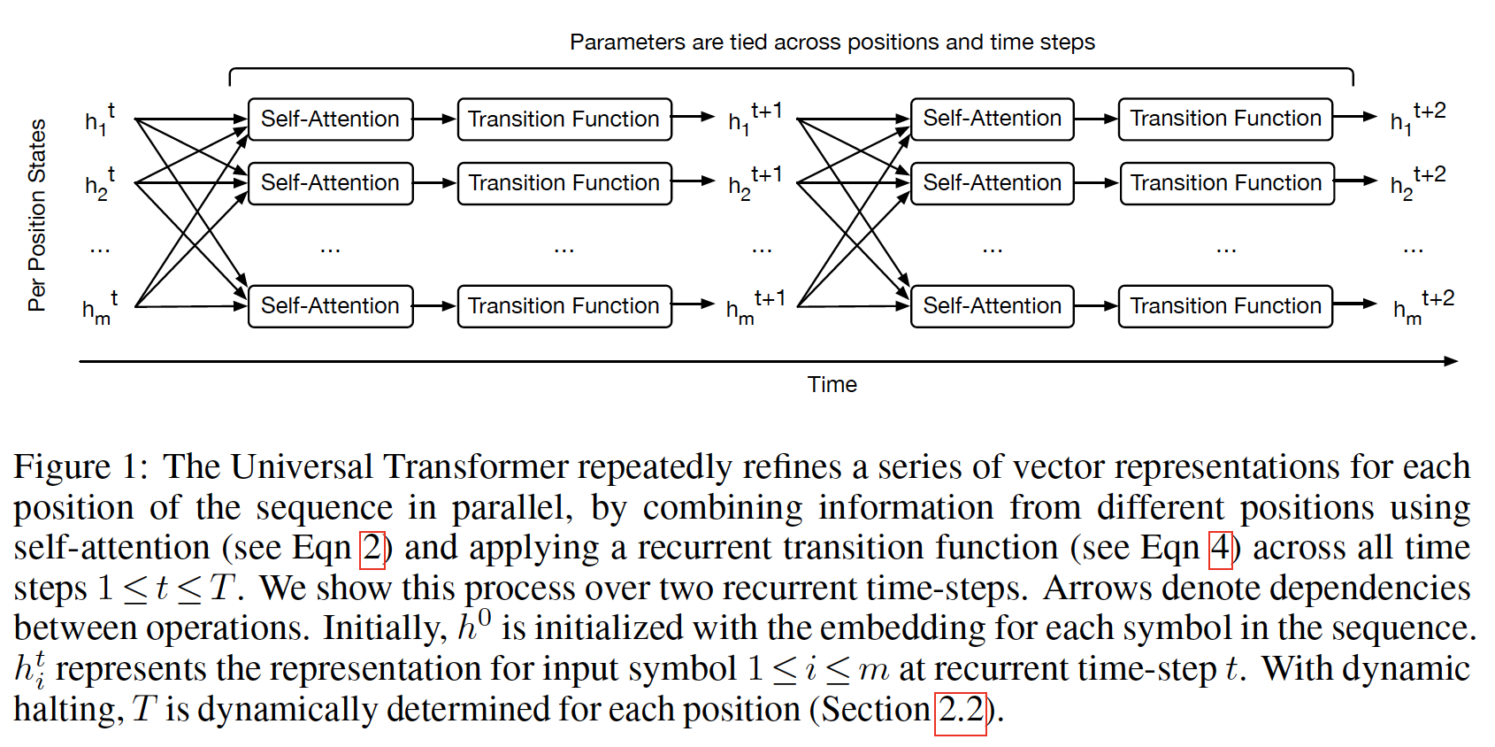 虽然线性变换在不同位置上是共享的(即,相同的参数),但是它们在层与层之间使用不同的参数。