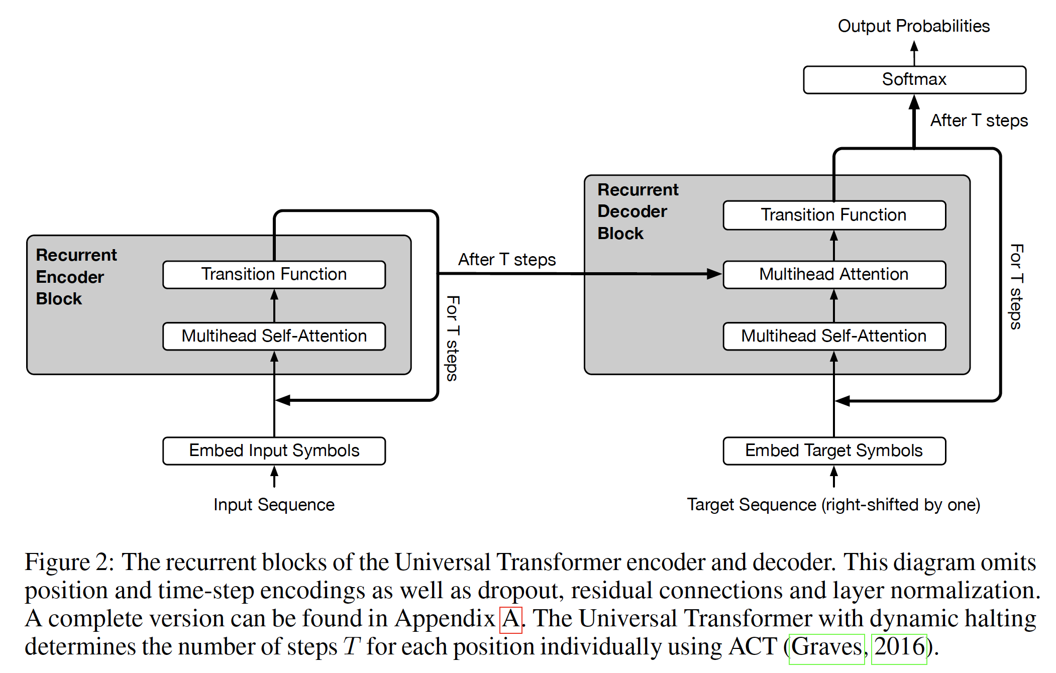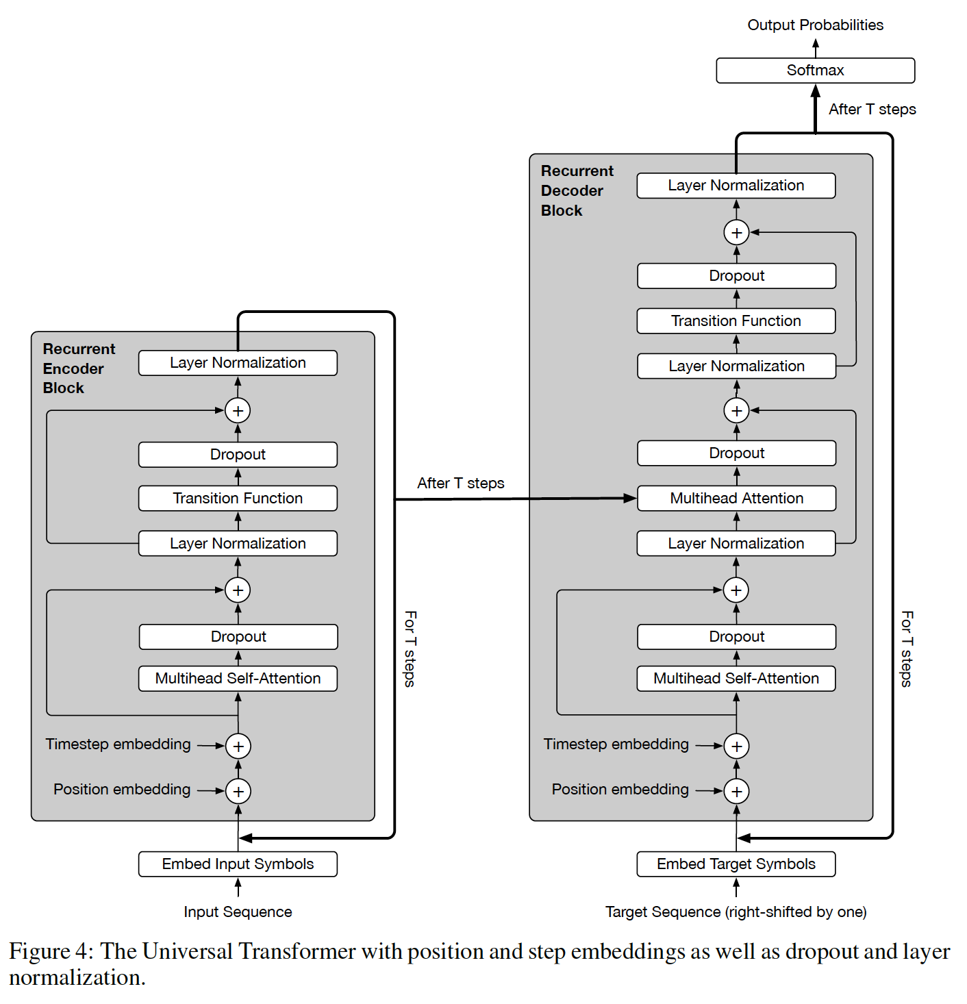 与其它序列转导模型类似,我们使用学到的 embedding 将 input token 和 output token 转换为维度 softmax 函数将 decoder output 转换为 next-token 的预测概率。