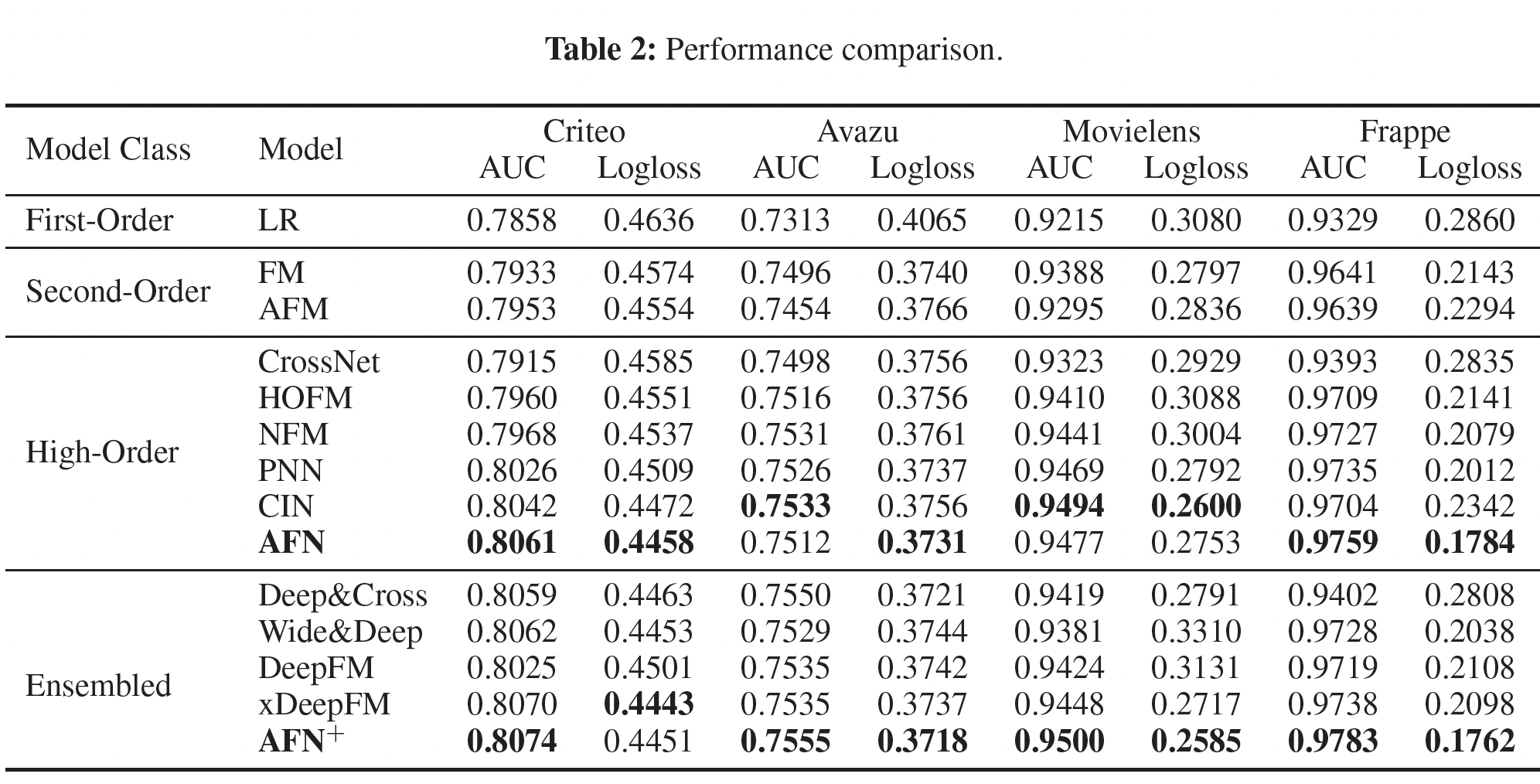 ensemble model 可以通过 logloss 损失来进行训练。我们把这个 ensemble 模型称为 "AFN+" 。