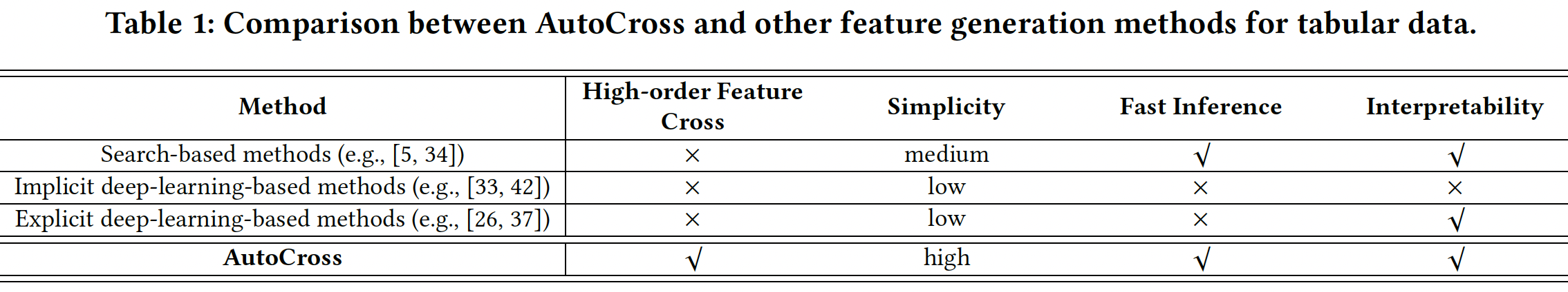 如前所述,一些方法致力于缓解这一问题:AFM 利用注意力机制为不同的交叉特征分配非均匀的权重,xDeepFM 只为保留的交叉特征学习权重。然而,这些方法引入了额外的成本,并且在模型训练前仍被限制在一个预设的最大特征交互阶次 discriminative 的高阶交叉特征的机会。