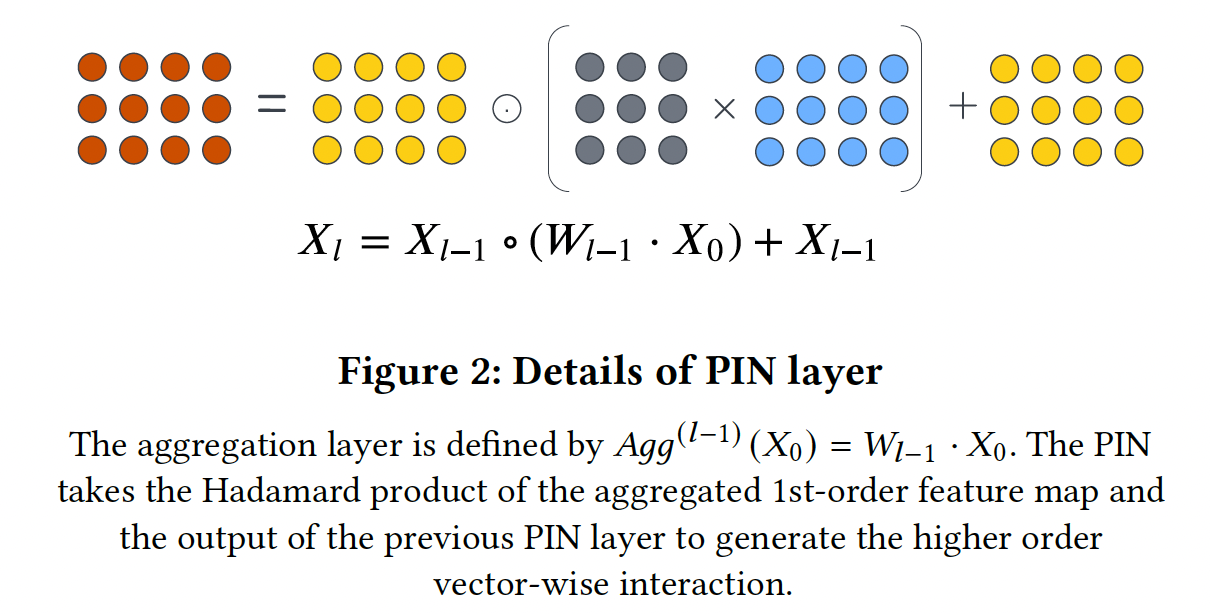 PIN 层计算 feature map feature map 的计算总成本是 Hadamard product 和残差连接。对于 在实践中,field 数量 embedding size