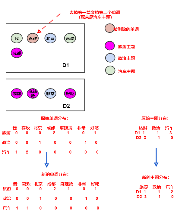 考虑到 , 为文档-主题 概率,与 比较接近; 为主题-单词 概率,与 比较接近。