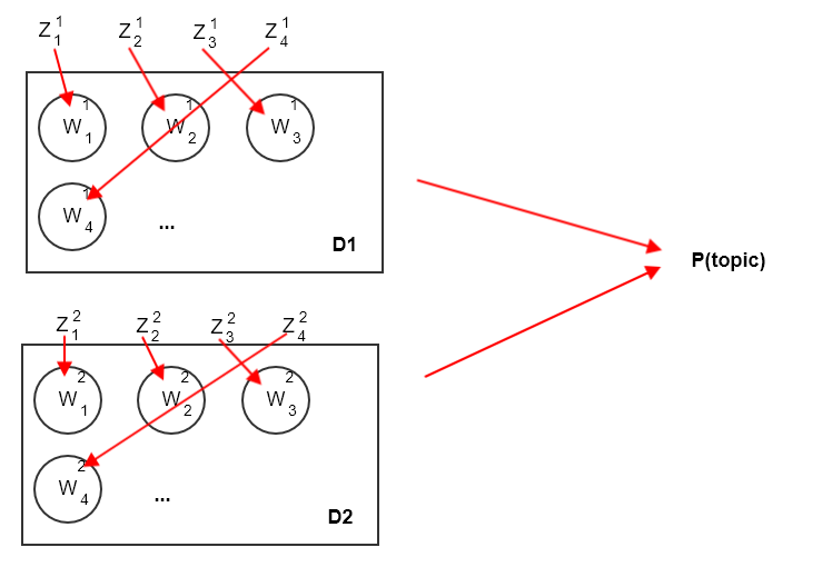 考虑观测变量 ,它表示第 篇文档 以及该文档中的 个单词。