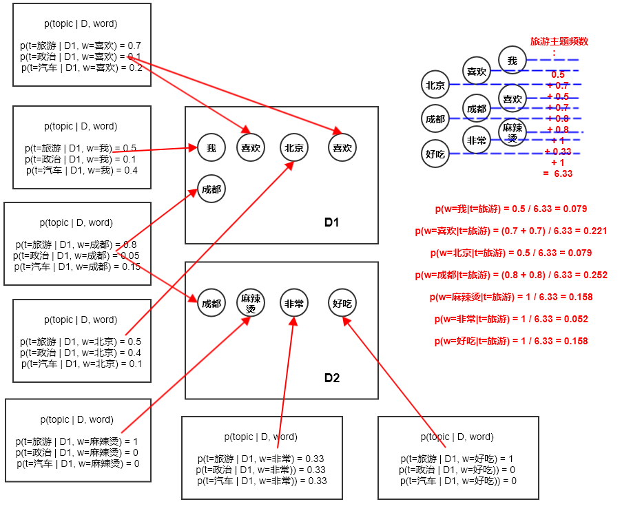 其物理意义为:给定文档 的条件下,单词 由主题 生成的概率占单词 出现的概率的比例。