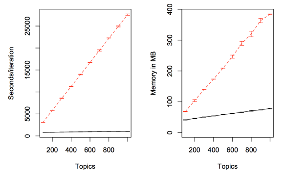 对于百万词汇表 x 百万主题,如果每一项(单词-主题计数)是 32 bit,则需要 4 TB内存才能存放。假设一台机器有 128 G内存,则至少需要 32 台参数服务器。因此如果能够大幅降低内存,则对硬件资源的需求也能够下降。