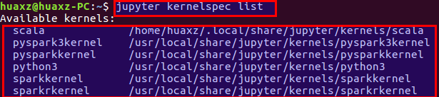 可以通过命令 jupyter kernelspec list 查看支持的kernel: