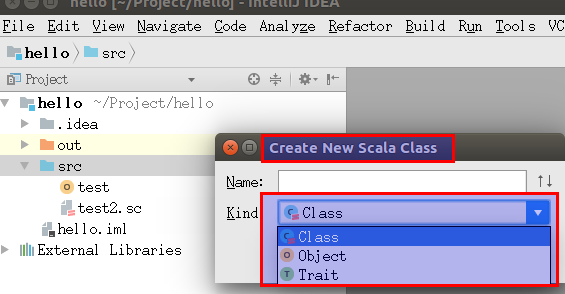 如果需要可执行代码,则Kind 选择Object,并新建一个包含main() 方法的 object (或者选择extends App ) 。在编辑界面右键单击,选择Run,则代码编译并执行。