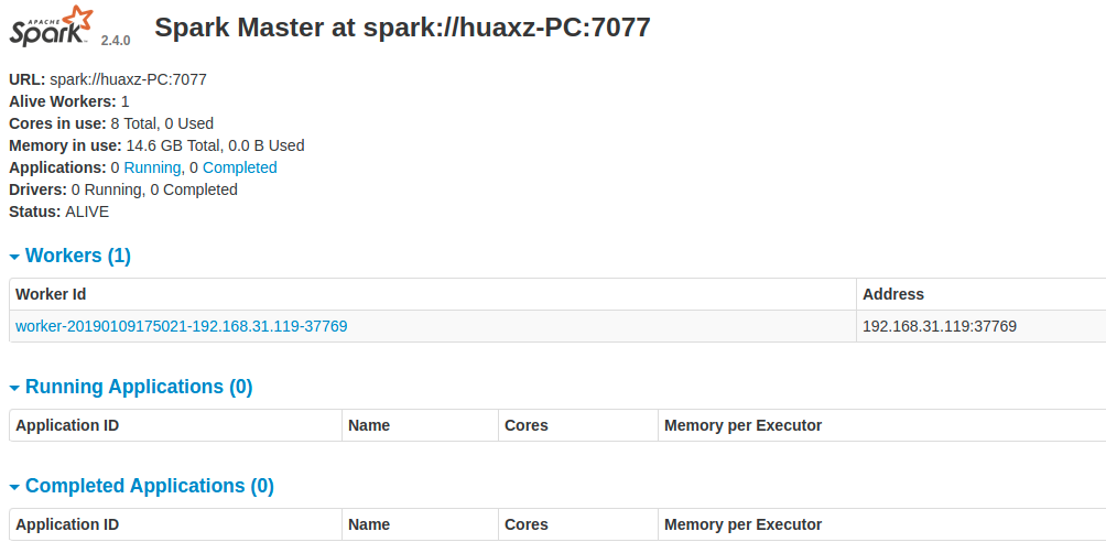 默认的spark ui :http://127.0.0.1:8080/ 。