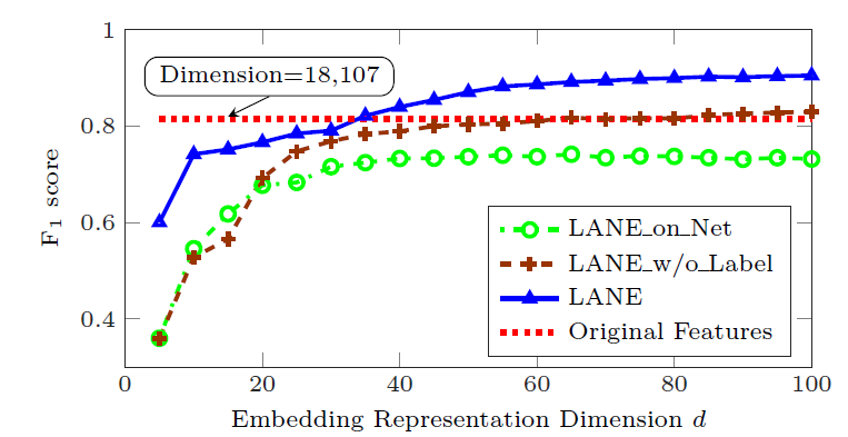 因此,通过利用 embedding representation learning,LANE 实现了比原始特征更好的性能。