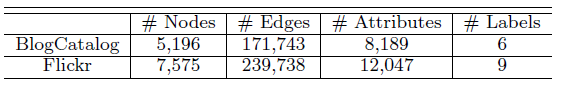 Flickr 数据集:一个在线图片共享社区,用户彼此关注从而构成一个网络。用户可以为图片指定 tag ,我们将这些 tag 作为节点(用户)的属性。用于可以加入不同的组,我们将这些组作为用户的 label 。