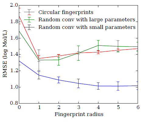 定量构效关系(quantitative structure-activity relationship: QSAR)的神经网络:预测分子性质的现代标准是结合圆形指纹(circular fingerprint)以及全连接神经网络(或者其它回归方法)。