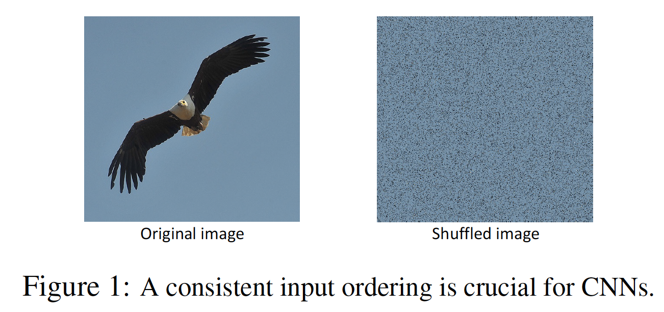 引言:过去几年中,神经网络在图像分类、自然语言处理、强化学习、以及时间序列分析等应用领域日益盛行。层与层之间的连接结构使神经网络适合处理张量形式的信号,其中张量元素以有意义的顺序排列。这种固定的输入顺序是神经网络提取高层次特征的基石。例如,如果我们随机混洗下图所示图像的像素,那么SOTA 的卷积神经网络就无法将其识别为一只鹰。