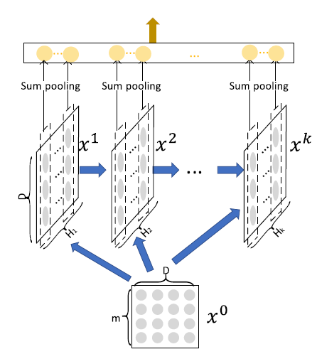我们设计了一个新的交叉网络,称作压缩交互网络(Compressed Interaction Network: CIN)。CIN 具有以下考虑:交互应用在 vector-wise level 而不是 bit-wise level ;显式高阶交互;网络的复杂度不会随着交互的阶次呈指数型增长。