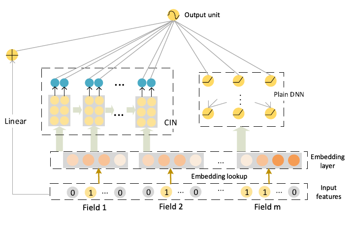 在论文 《xDeepFM: Combining Explicit and Implicit Feature Interactions for Recommender Systems》 中,作者提出了一种基于神经网络的模型,以显式的、vector-wise 方式学习特征交互。论文的方法基于深度交叉网络 (Deep & Cross Network: DCN),旨在有效地捕获有界阶次(bounded degree)的特征交互。然而,作者将在论文中论证 DCN 将导致一种特殊的交互形式。因此,论文设计了一种新颖的压缩交互网络(compressed interaction network: CIN)来代替 DCN 中的交叉网络。CIN 显式地学习特征交互,交互的阶次(degree)随着网络深度的增加而增长。