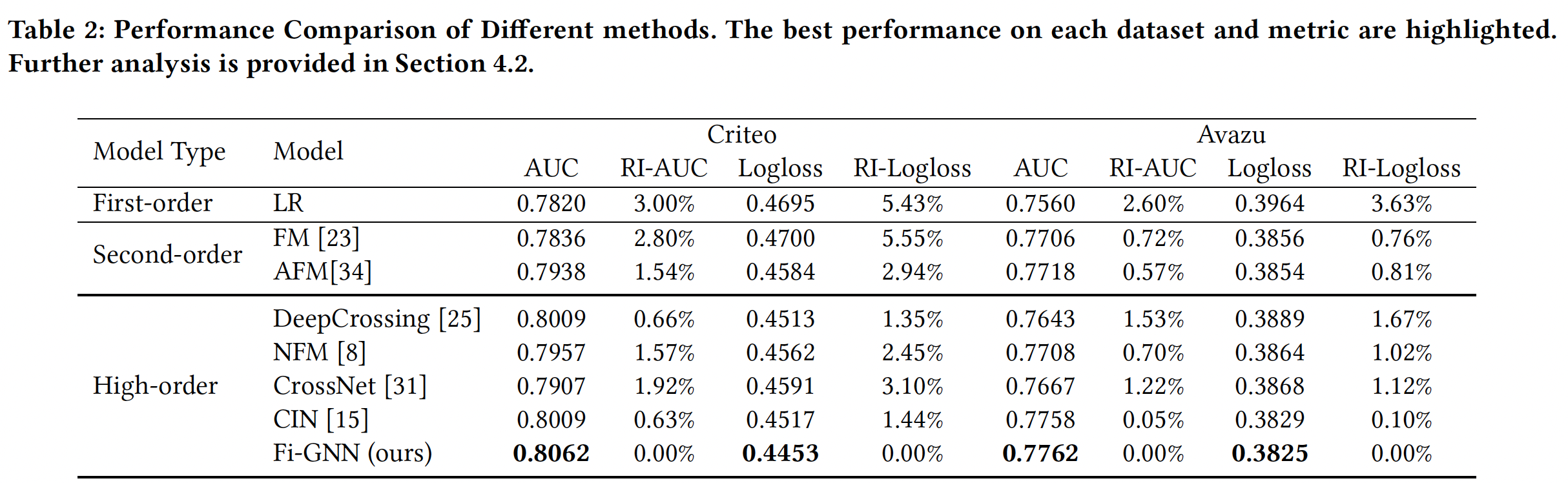 建模高阶特征交互的方法大多优于建模二阶特征交互的方法。这表明二阶特征交互是不够的。