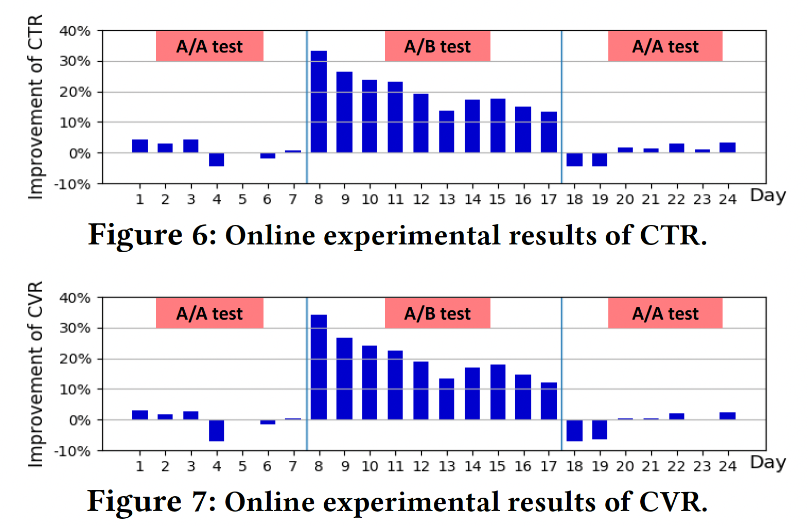 该系统是相当稳定的,在 A/A test 期间,CTR 和 CVR 都在8% 以内波动。