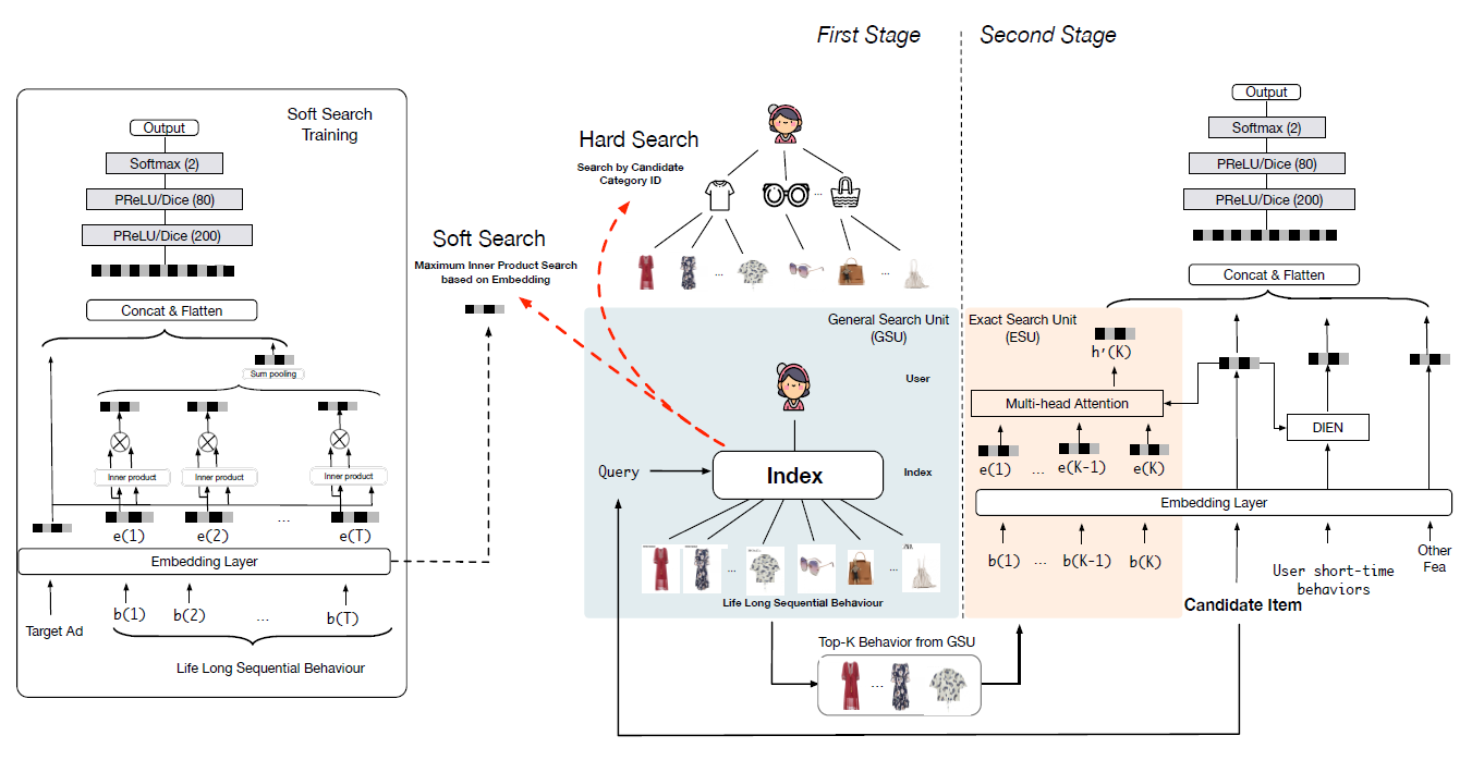 对于软搜索,GSU 和 ESU 共享相同的 embedding 参数。