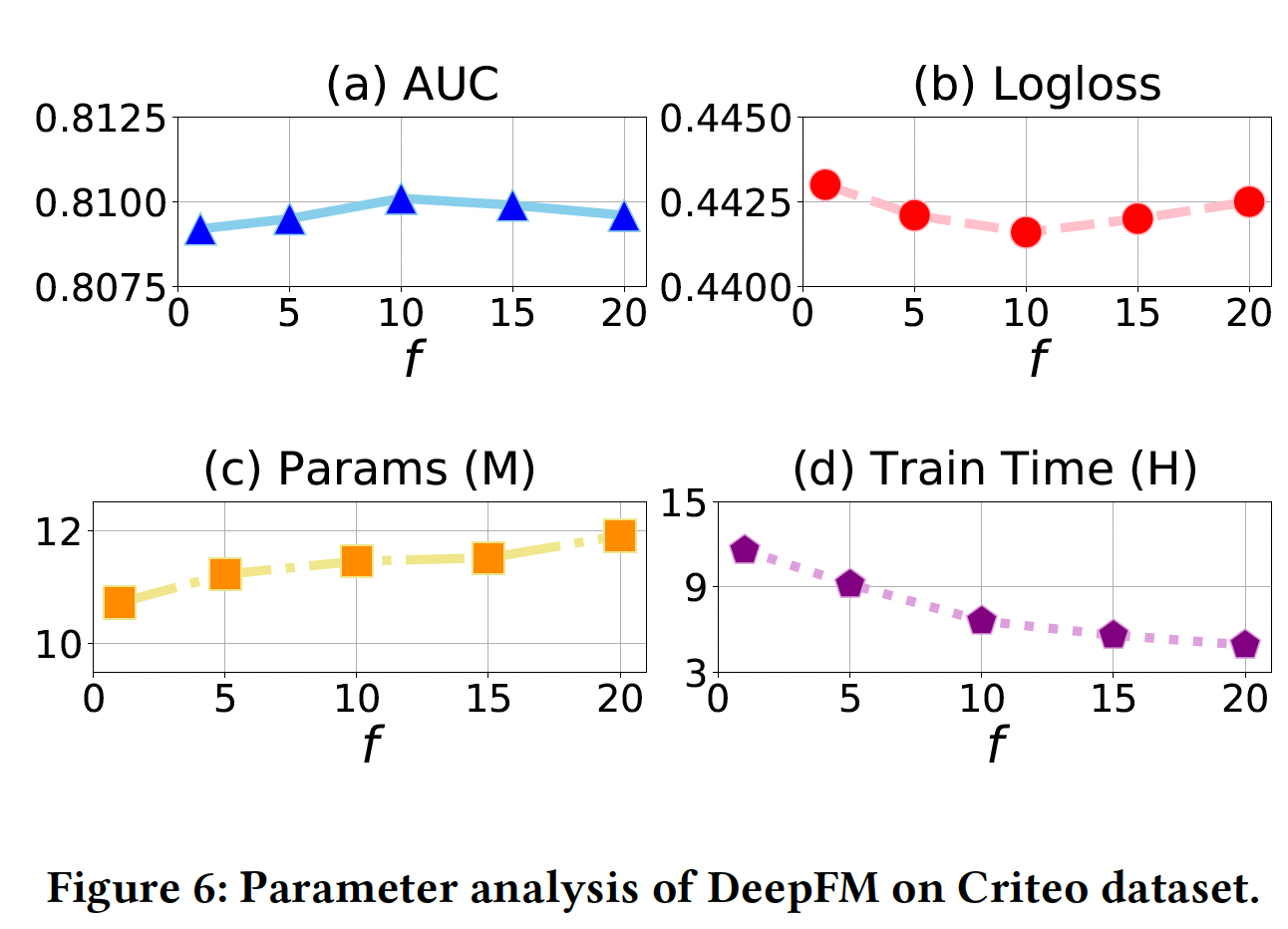 数据集:Criteo 。每个样本包含 13 个数值 feature field、26 个 categorical feature field 。