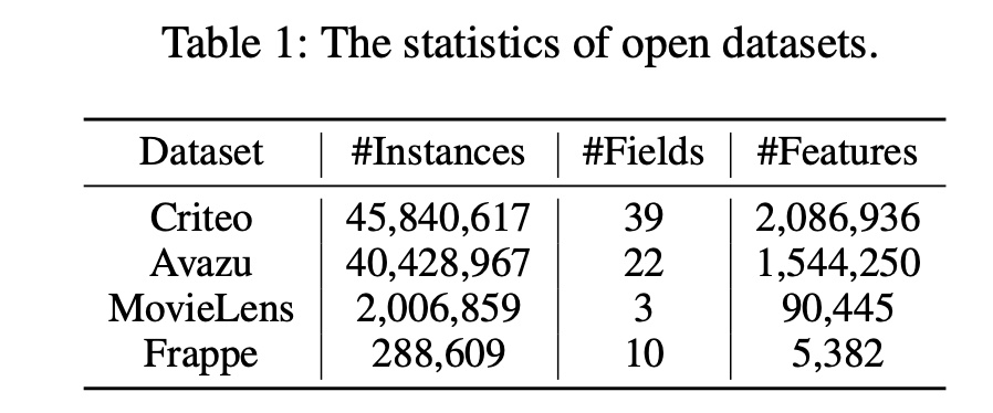 数据集:Criteo, Avazu, MovieLens, and Frappe 。
