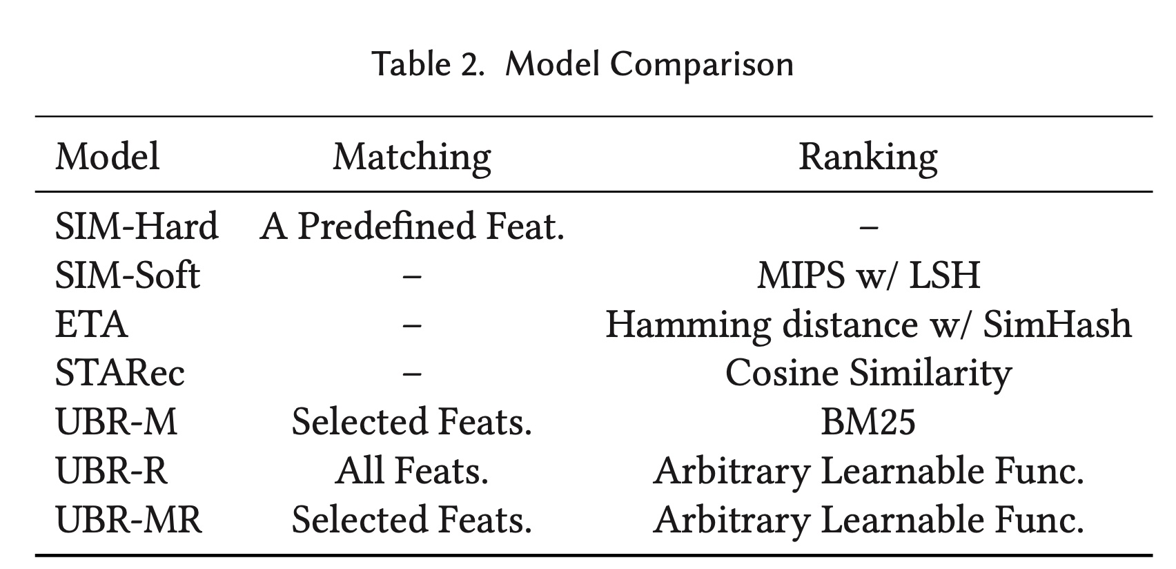 我们系统地数学化了 learning to retrieve user behaviors 的问题,并提出了一个有效的模型和相应的训练算法。UBR 是第一个支持可学习的任意检索函数(而不是预定义的检索函数)的工作。