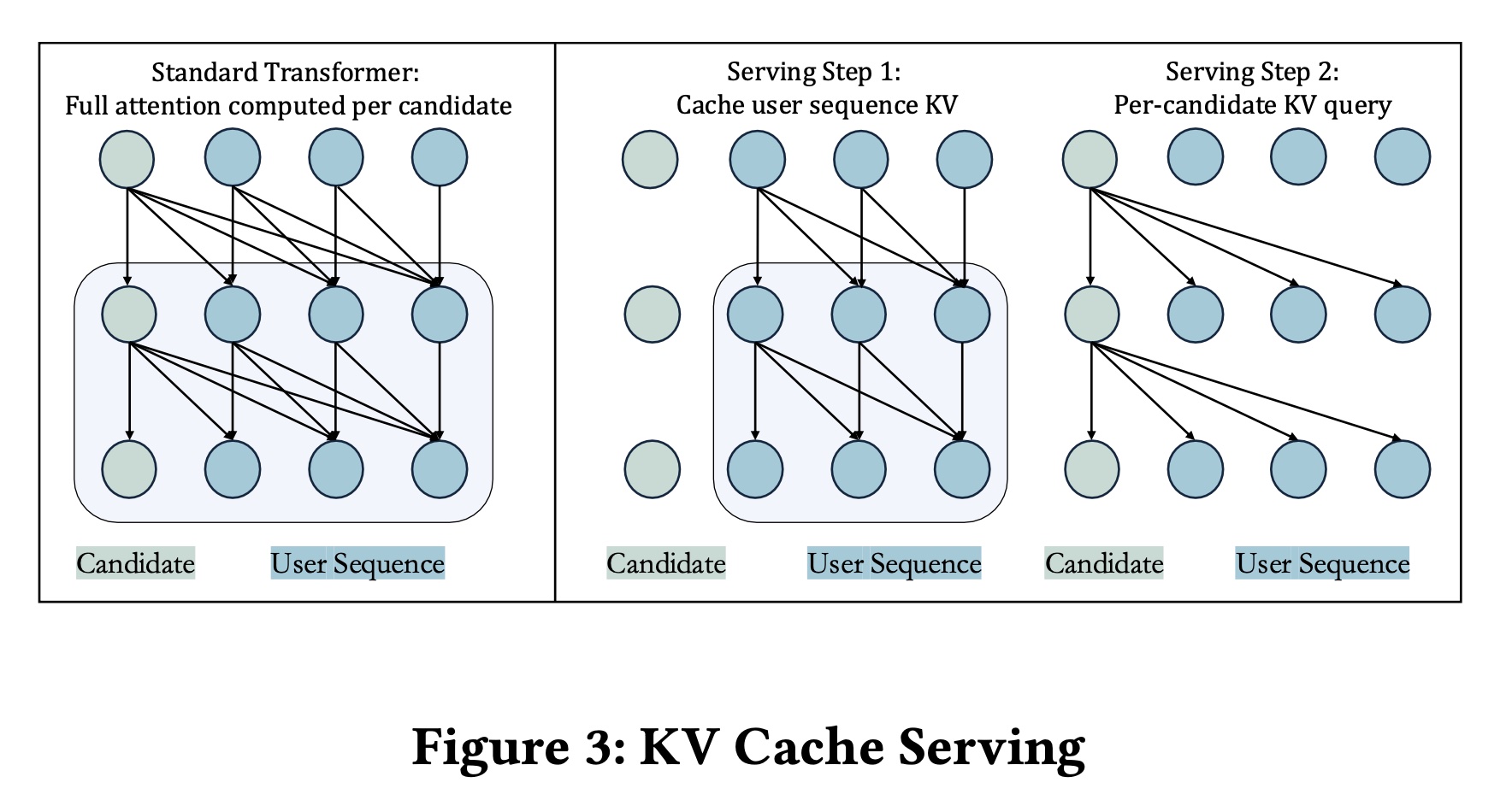 预计算并缓存 key-value tensors of the user sequence。
