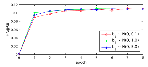 但是,即使没有使用深度学习方法,MaxMF 的性能也要比 WALS 好得多。这可以用以下事实来解释:MaxMF 将标准MF 泛化为非线性模型,并对于每个用户采用了多个representation 向量。