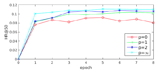 p=0 时的性能相对而言要差很多。原因是当 combined interest representation)等于没有参考label 时的兴趣representation 均值。
